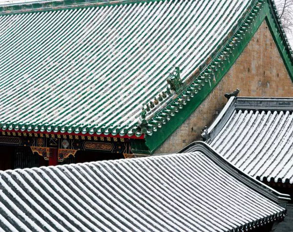 與《紅樓夢》有著不解之緣的恭王府,每到冬日,白雪、紅梅、琉璃瓦相映成趣,為游人營造了一個(gè)色彩斑斕的書畫意境。尤其是屋頂那一片片翠綠的琉璃瓦,經(jīng)歷兩百多年的風(fēng)霜雨雪和歲月侵蝕,依然色澤猶存、流光溢彩。